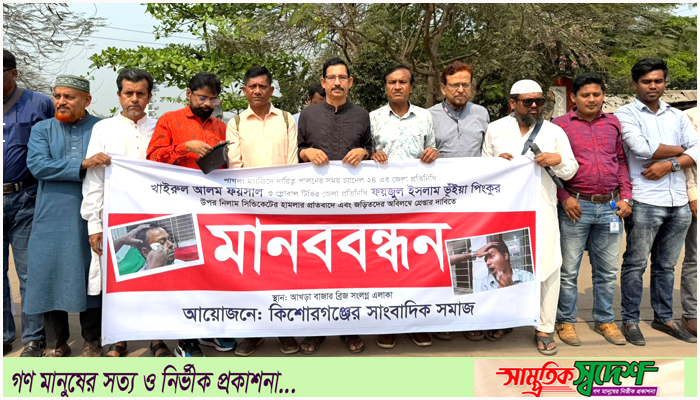 কিশোরগঞ্জে সাংবাদিকদের ওপর হামলার ঘটনায় জড়িতদের বিচারের দাবিতে মানববন্ধন