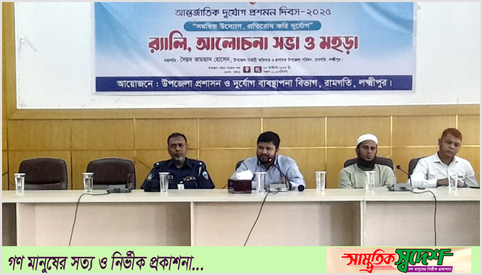 মুহাম্মদ নিজাম উদ্দিন, রামগতি (লক্ষ্মীপুর) প্রতিনিধি: “সমন্বিত উদ্যোগ, প্রতিরোধ করি দুর্যোগ” প্রতিপাদ্যকে সামনে রেখে লক্ষ্মীপুরের রামগতিতে র্যালী, আলোচনা সভা ও মহড়ার মধ্য দিয়ে পালিত হয়েছে আর্ন্তজাতিক দুর্যোগ প্রশমন দিবস-২০২৫। অনুষ্ঠিত হয়েছে।